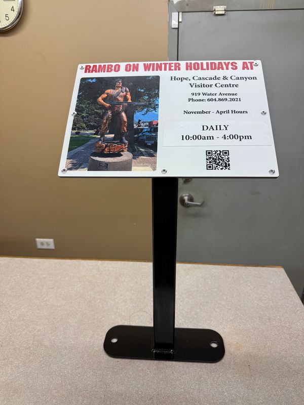 Custom sign display stand for the District of Hope