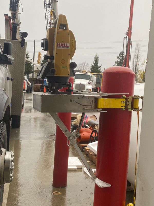 Custom aluminum bracket to hold GPS Total station on to any pole for a local paving company